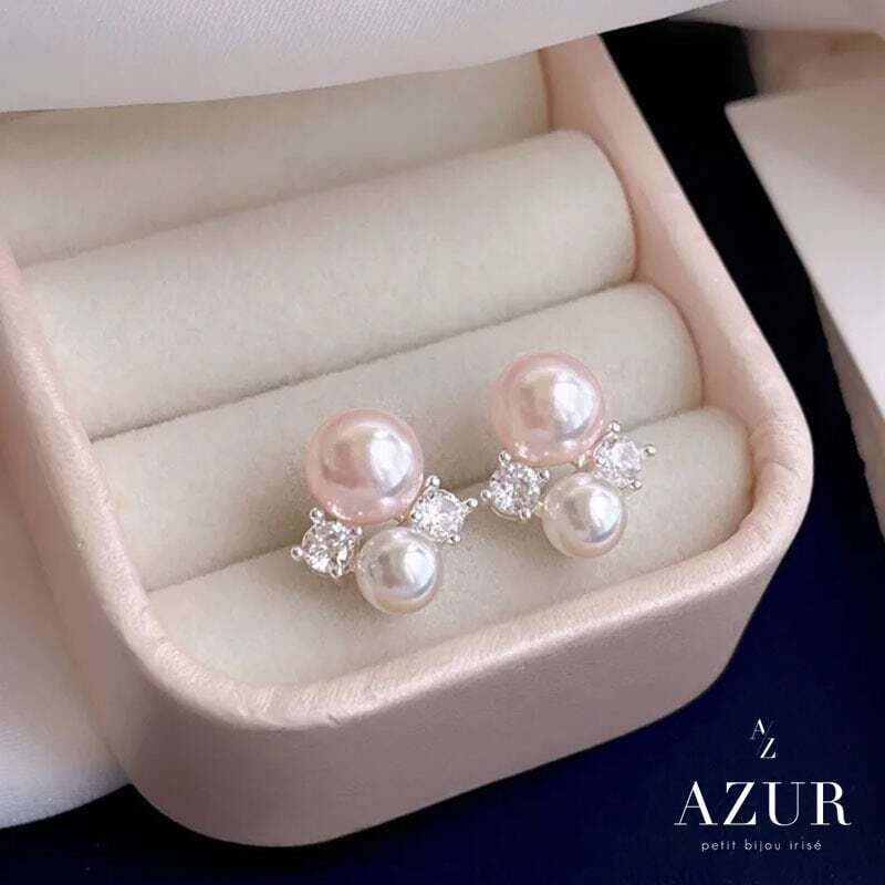 柔らかな艶を放つピンクパールと、 繊細にきらめくジルコニアをバランスよく組み合わせた、 上品で華やかなピンクパールジルコニアピアス。 大小2粒のパールが耳元に立体感を生み、 間にあしらったジルコニアが光を受けてさりげなく輝きます。 可愛らしさの中に大人の品を感じさせるデザインで、 普段使いから特別な日まで幅広く活躍します。
