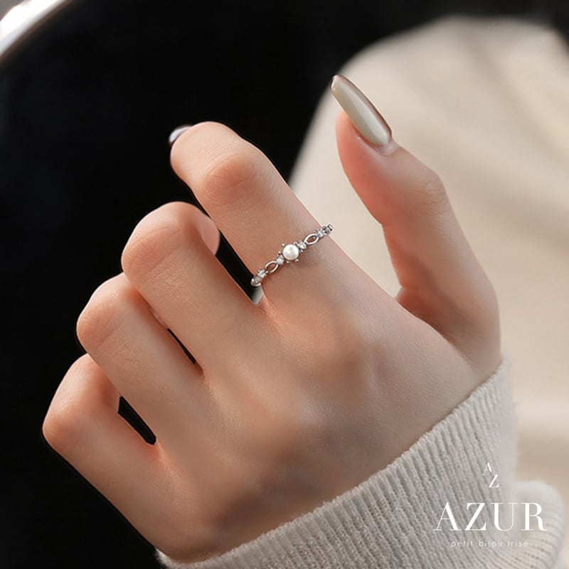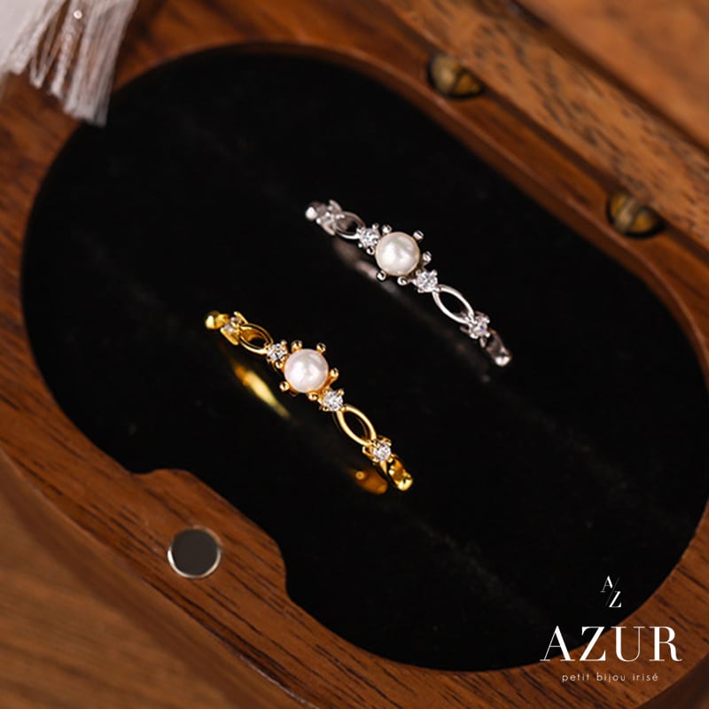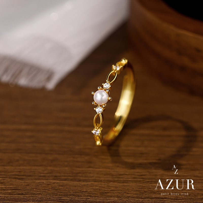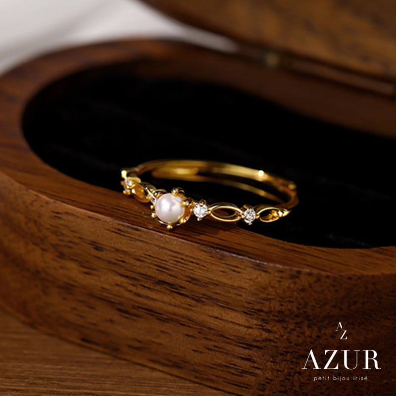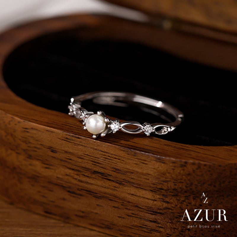 上品な艶を放つパールと、繊細なジルコニアの輝きが指先を優美に彩るプレシャスパールリング。