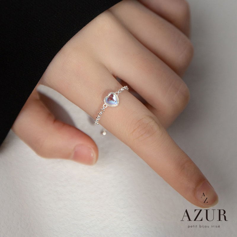 角度によってブルーやピンクに色を変えるオーロラのような輝きが、さりげなく手元を華やかに演出します。
