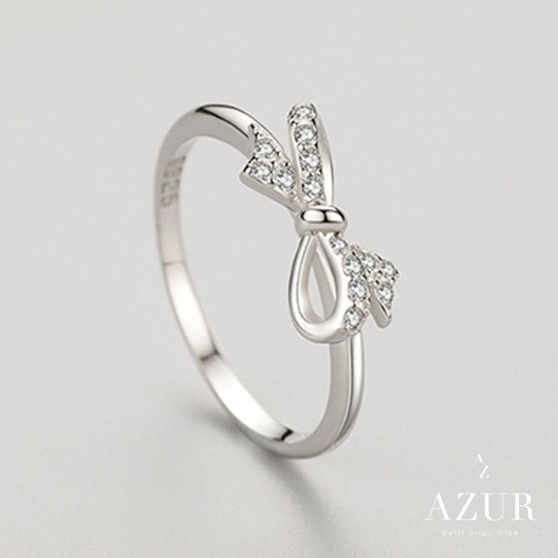 華奢なリボンモチーフに、繊細なジルコニアがきらめく上品なリュバンジルコニアリング。