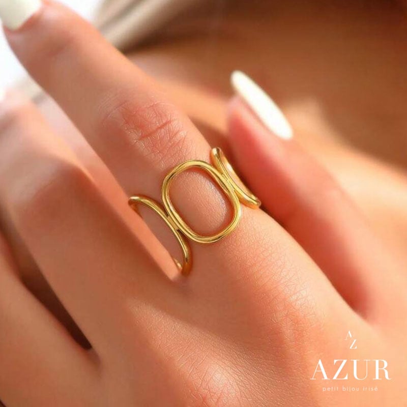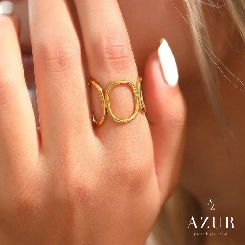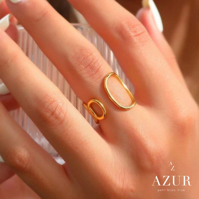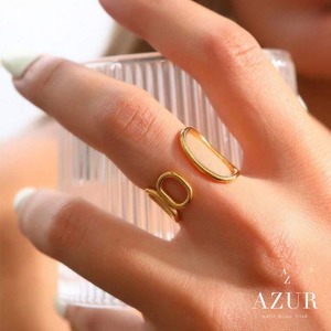 楕円モチーフと曲線ラインが指元にやわらかな印象を与え、シンプルながらもひとクセあるデザインがコーディネートのアクセントに。