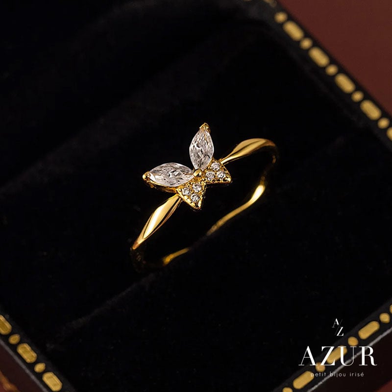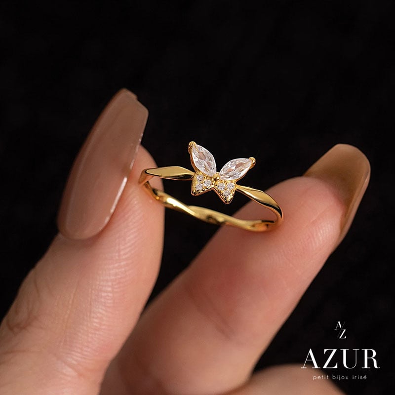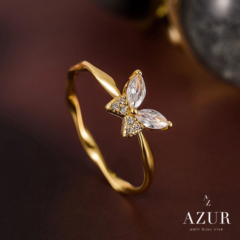 繊細に輝くジルコニアで描かれたパピヨンモチーフが指先に上品な華やかさを添えるリング。