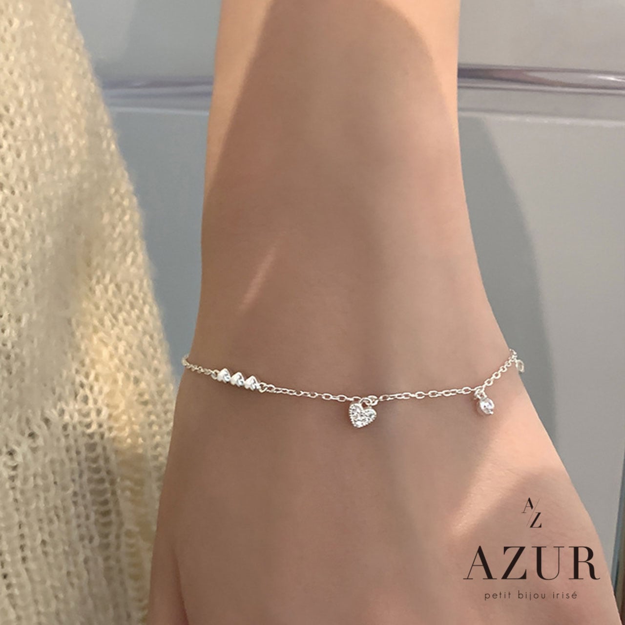愛らしい気質を引き出す、細めのチェーンで小さなハートチャームのブレスレット。