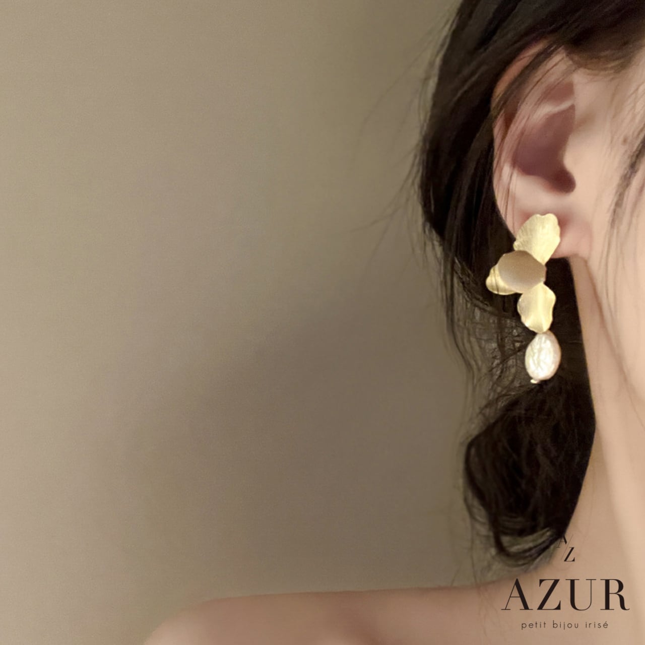 花びらが優美に輝く、ペタルバロックパールピアス。