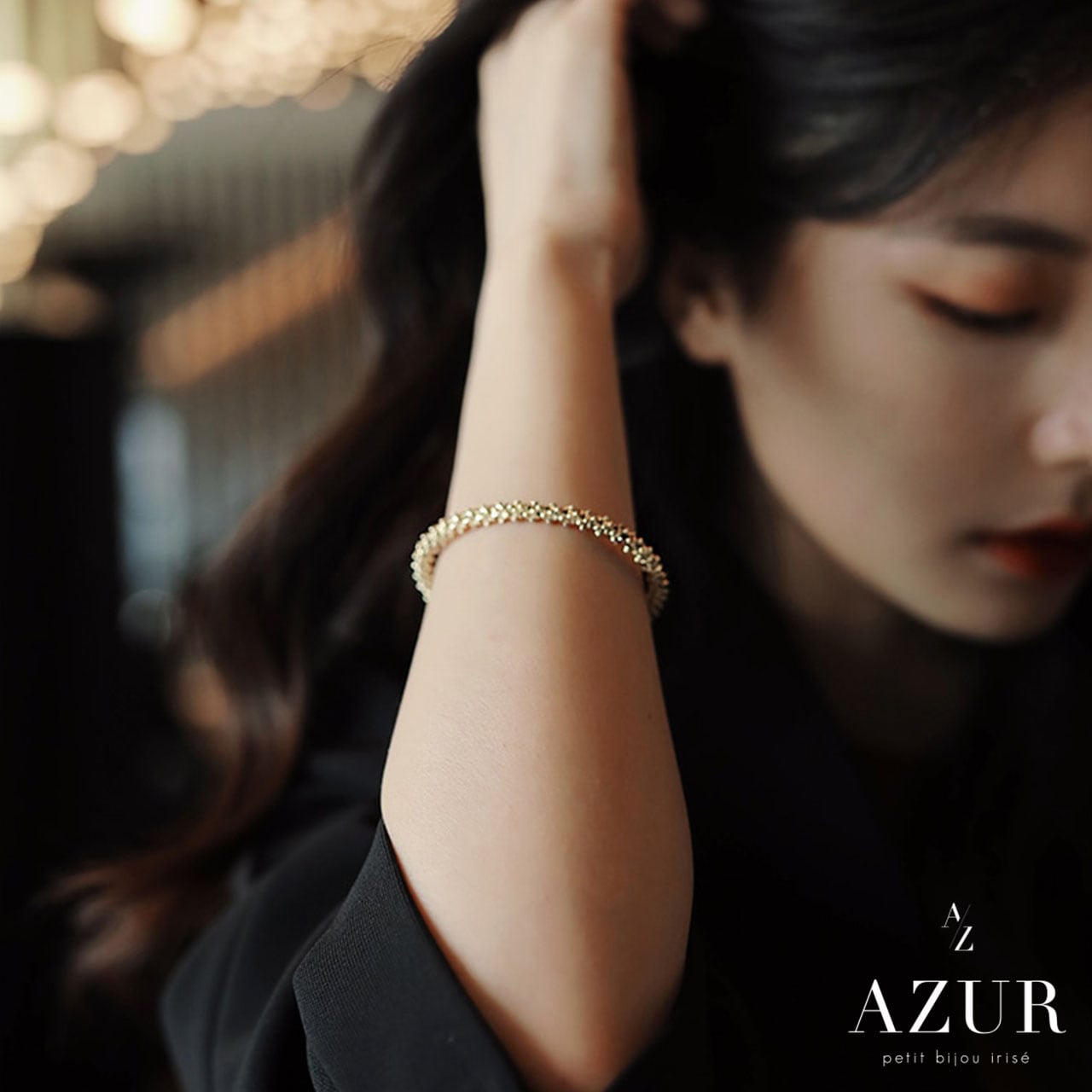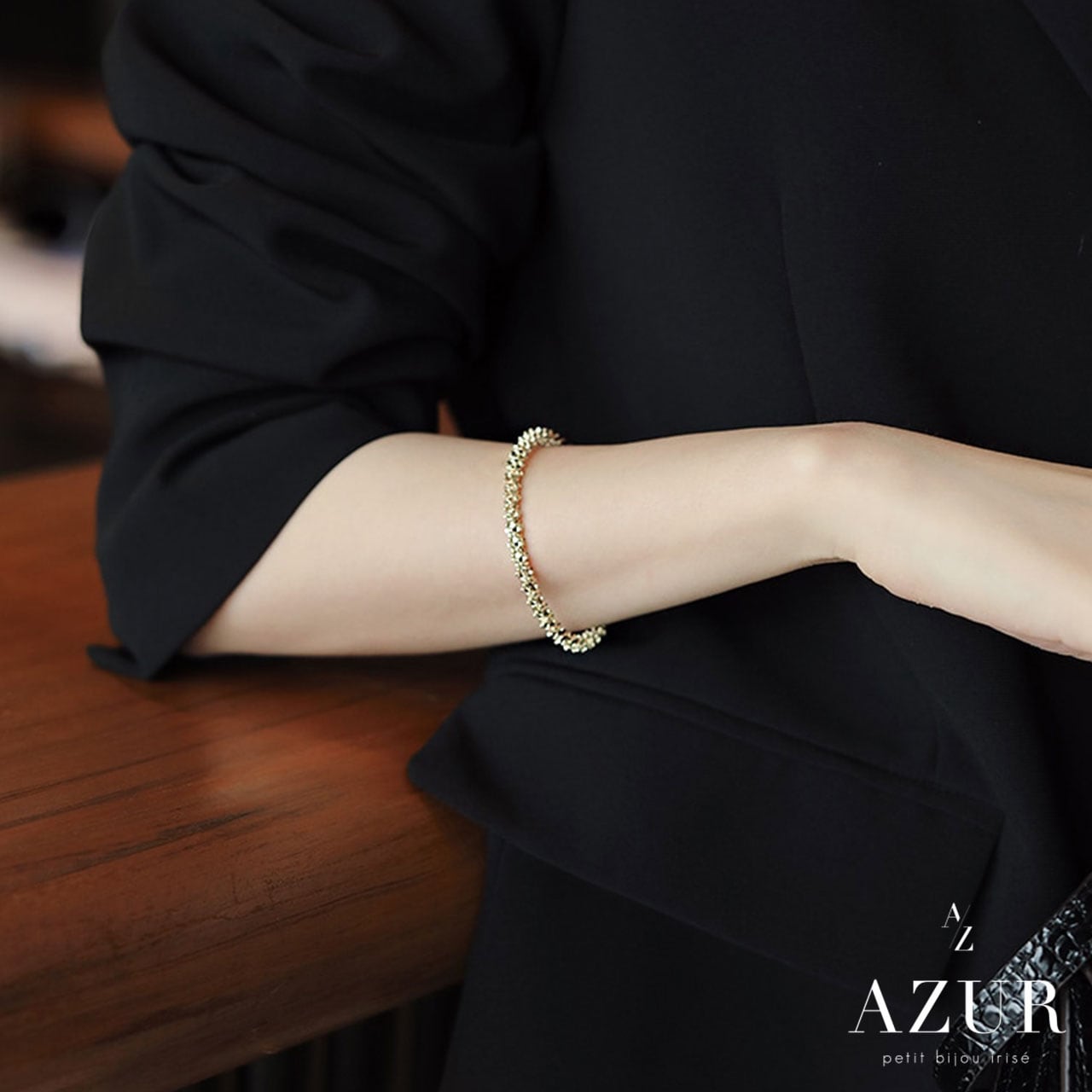 イレギュラーバングルブレスレットは、光沢のあるメタルが散りばめられたトレンドアイテムです。