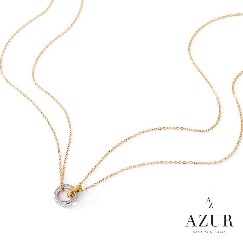 おしゃれでクールな印象を演出する、ダブルリングネックレス。