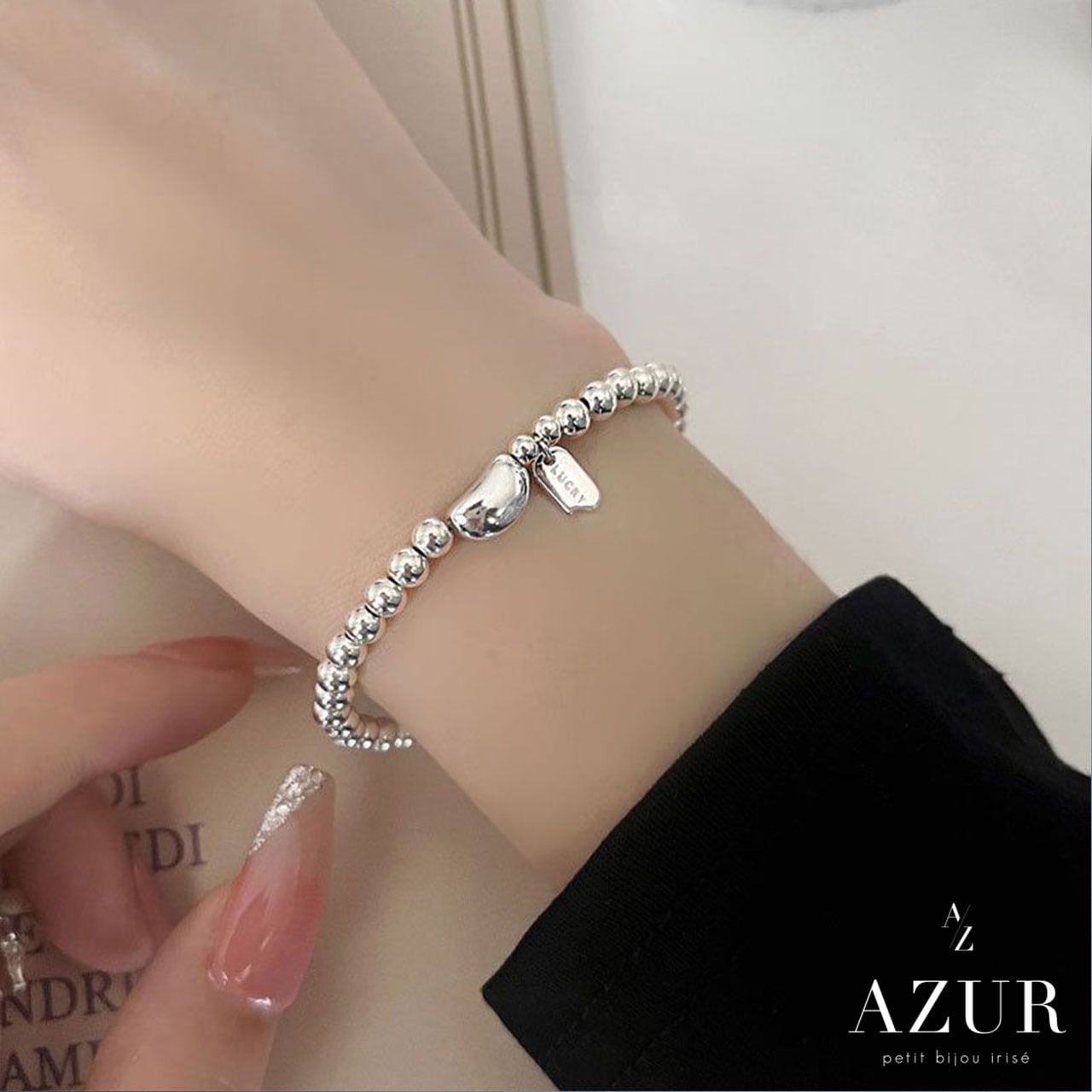 小さなシルバーボールが連なりがきらきらと輝くボールストリングブレスレット。