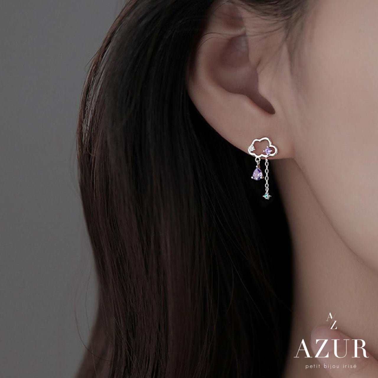 チャーミングな雲や水滴のモチーフが個性的なウェザーレインピアス。