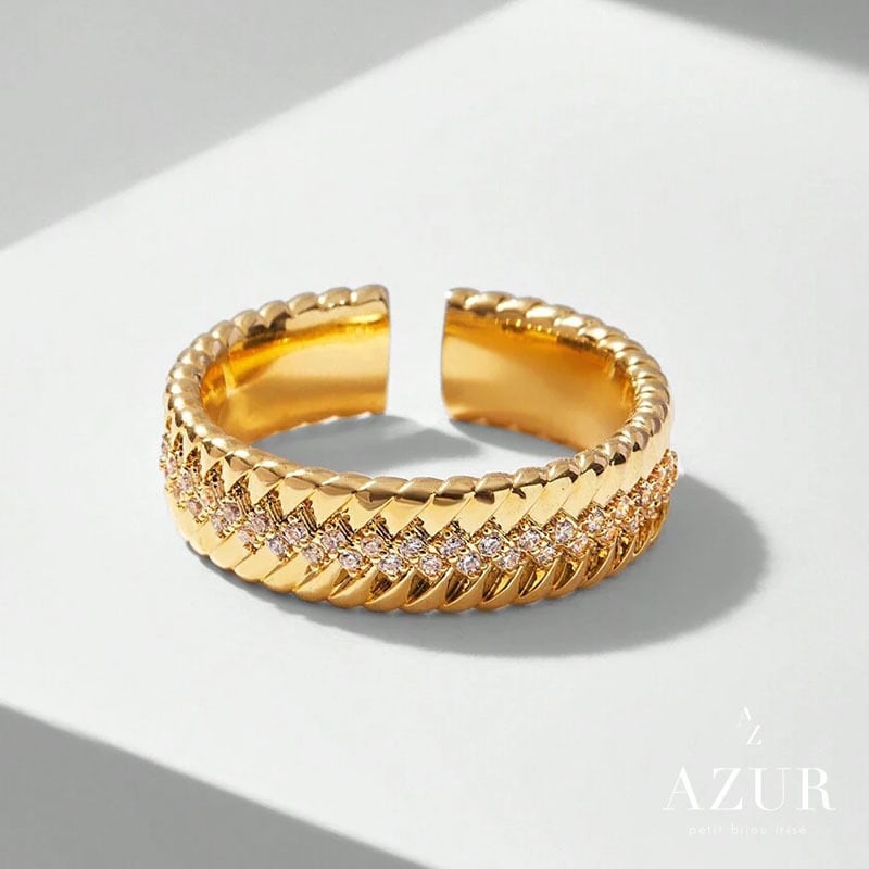 キュービックジルコニアが散りばめられた輝くデザインは、まるで星の輝きを身にまとっているかのよう。