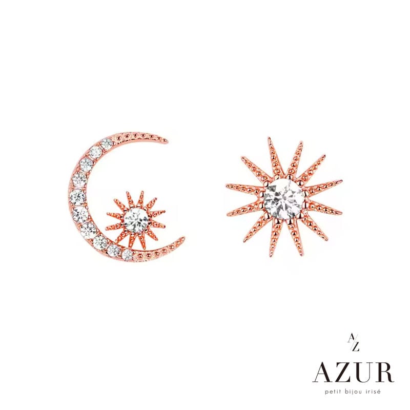 太陽と月がモチーフとなっており、大人かわいい印象を演出します。片耳には太陽の形、もう片耳には月の形が施されていて、おしゃれなアクセントになること間違いなしです。